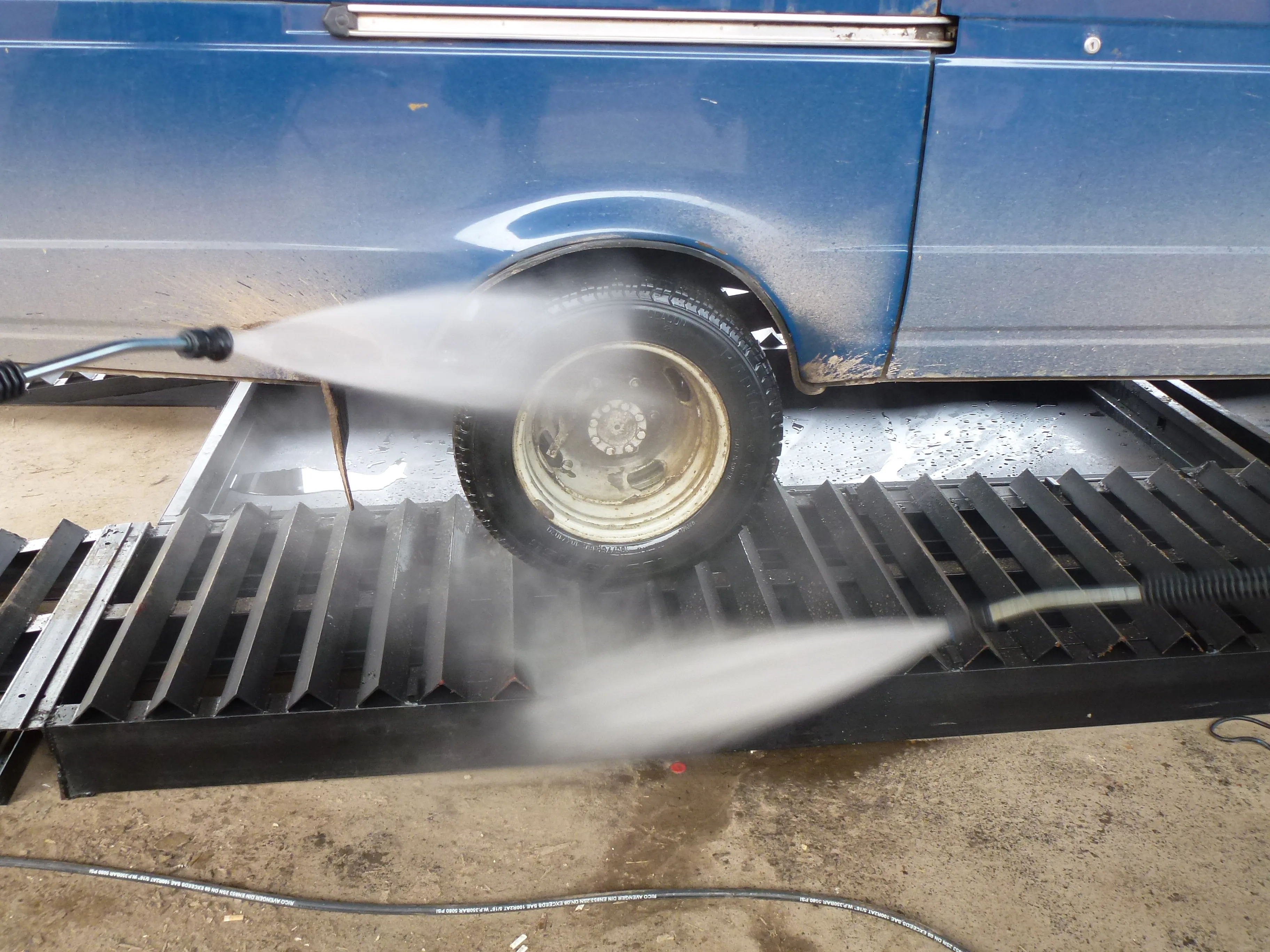 Эстакада металлическая служит площадкой, на которой находится автомобиль во время мойки.